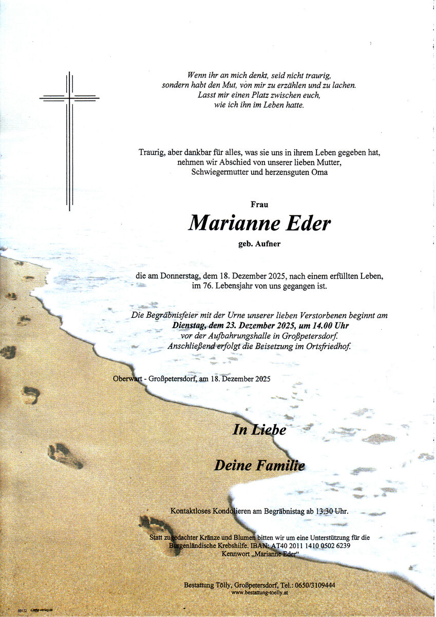 Lieber Gott, gib Marianne das ewige Leben! Mein herzlichstes Beileid! Annemarie Lackner
