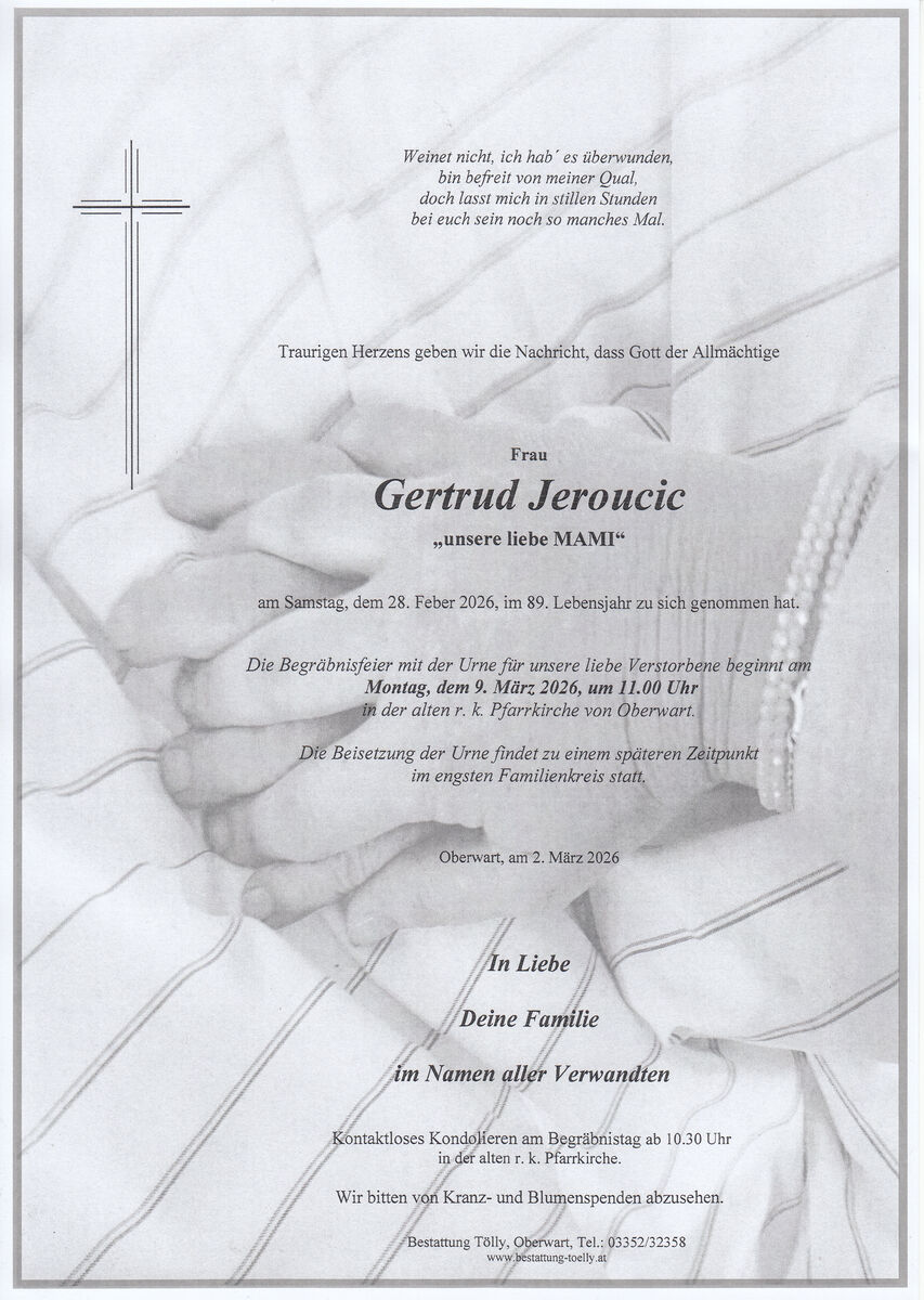 Sollten Sie beim Entzünden einer Gedenkkerze persönliche Daten (z.B. Ihren Namen) angeben, sind diese auf der Website für alle Besucher sichtbar. Diese Daten werden in keiner Weise von uns für andere Zwecke (weiter-) verarbeitet. Diese Daten werden gemäß Art 6 Abs 1 lit a DSGVO aufgrund Ihrer Einwilligung rechtmäßig erhoben. Zur Löschung eines Eintrags wenden Sie sich bitte an folgende E-Mail-Adresse: office@bestattung-toelly.at. Nähere Informationen erhalten Sie in unserer Datenschutzerklärung.
