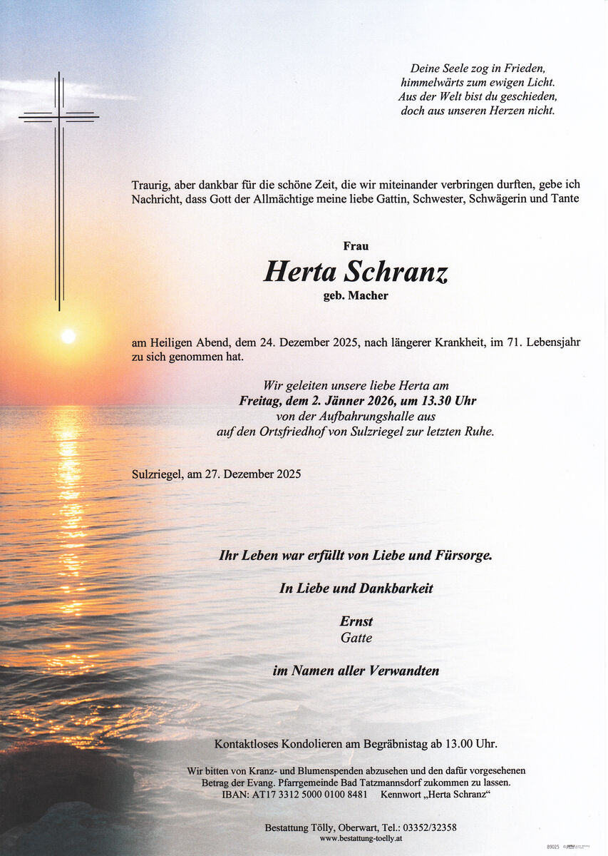 Herzliches Beileid der Trauerfamilie! Ernst und Edith Schranz