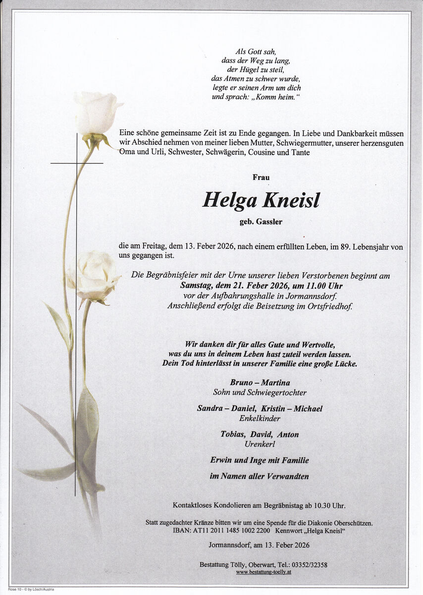 Liebe KneislOma, danke für alles und ruhe in Frieden - unsere aufrichtige Anteilnahme - Franzi&Gerhard, Stefanie, Christopher und Michael Wallis