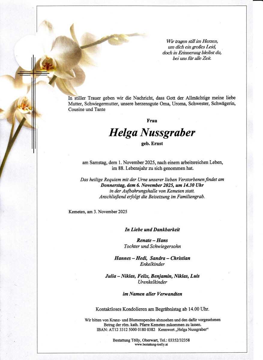 Wärme für deine Seele, ein Licht für deinen letzten Weg. Pfiat di Helga Tant. In liebevoller Erinnerung Herta, Gottfried, David, Julia